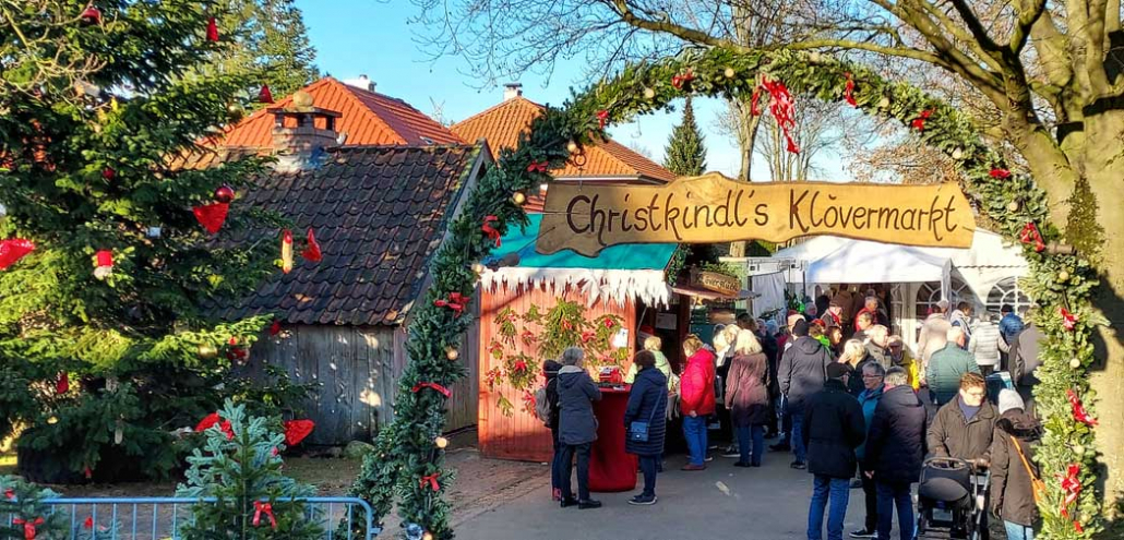 Geschmückte Holzhütten, Pagoden und Buden, 3 große Zelte und ein vielfältiges Angebot an handgefertigten Produkten laden zum Bummeln, Stöbern und Kaufen ein. Die Losbude, das sogenannte Klöverglück, hat wie in all den Jahren wieder einen festen Platz. Auf der Gewinnpalette stehen die altbewährten Preise mit Weihnachtsstern, Wurstpakete, Stollen, Präsentkörbe und Tannenbäume, bzw. Gutscheine dafür, gibt es auch zu gewinnen.