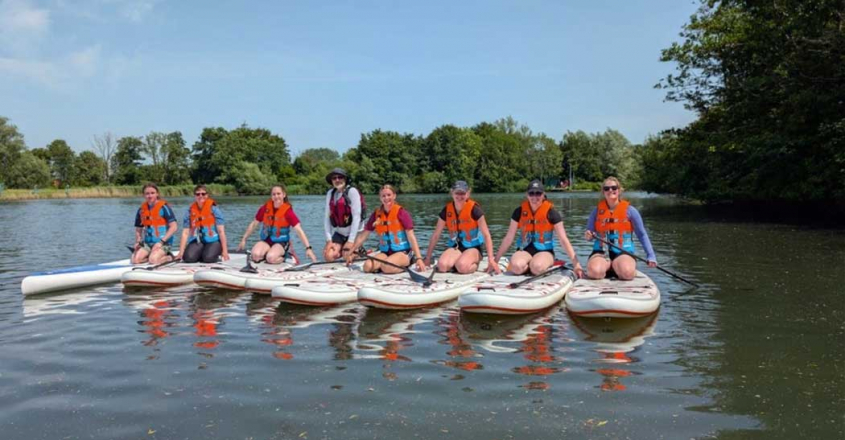 Kürzlich veranstaltete die Sportjugend Wesermarsch einen Stand-Up-Paddling (SUP)-Lehrgang für Einsteiger im Seenpark Nordenham. Bei bestem Wetter ging es für acht Teilnehmende aus vier Vereinen aufs Wasser.