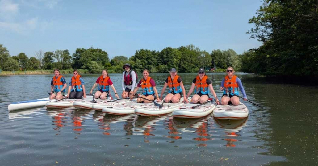 Kürzlich veranstaltete die Sportjugend Wesermarsch einen Stand-Up-Paddling (SUP)-Lehrgang für Einsteiger im Seenpark Nordenham. Bei bestem Wetter ging es für acht Teilnehmende aus vier Vereinen aufs Wasser.