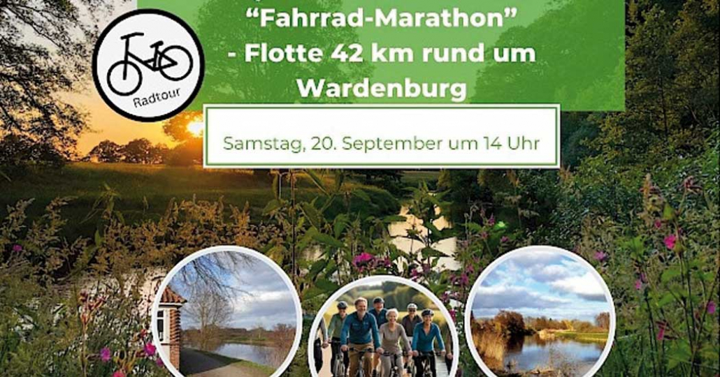 Zu einem „Fahrrad-Marathon“ – Flotte 42 km rund um Wardenburg“ mit Gästeführer Walter Borchers lädt die Touristinformation umtref am Sonnabend, dem 20. September 2025 von 14.00 bis ca. 19.00 Uhr ein. Start ist am Haus des Sp(O)rts an der Achternmeerer Straße 16 in Wardenburg-Hundsmühlen. Diese abwechslungsreiche Rundfahrt führt durch die Grenzdörfer Wardenburgs und verbindet Natur und Geschichte auf reizvolle Weise. Entlang der Lethe und des Huntedeichs eröffnen sich idyllische Wasserlandschaften, während der Tillysee und das Dreiländereck geschichtliche Einblicke bieten. Moorgebiete wie das Moorgut Rote Erde prägen die Landschaft und eine Einkehr im Dorfgemeinschaftshaus (Selbstversorgung) lädt zur Pause ein. Die Kosten betragen pro Person 10,00 Euro, Kinder unter 14 Jahren frei. Anmeldungen sind unter Tel.: (04407) 209 07, per eMail info@touristinfo-wardenburg.de oder im umtref-Büro in der Oldenburger Straße 228 möglich.